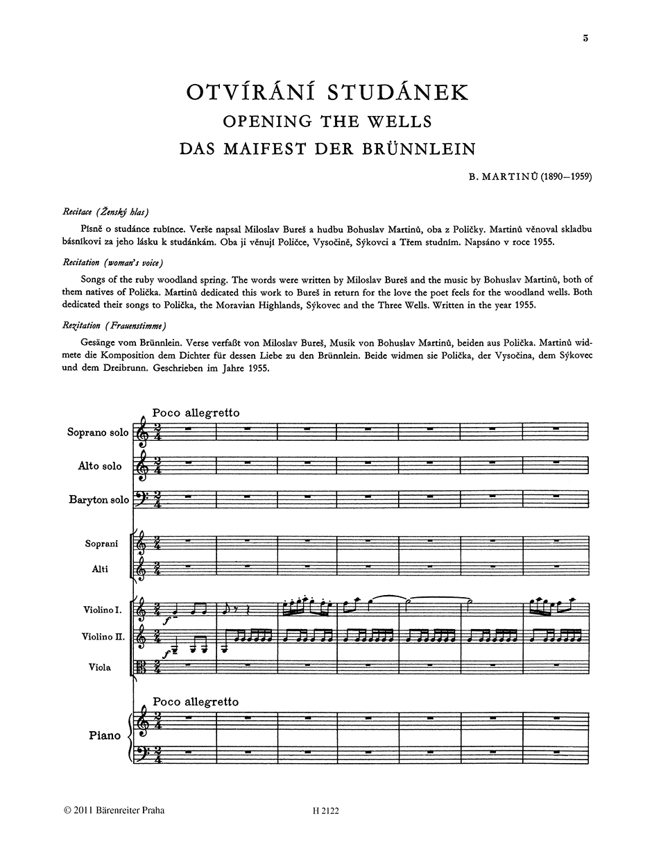 H 354 - Recitation, Soli (Soprano, Alto, Baritono) Coro Femminile, Violino I, II, Viola, Pianoforte